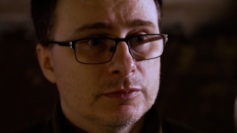 On the drone monitors flickering near him, another grenade drops into a trench. Two Russian soldiers can be seen clambering inside the ruins of a dugout, one manhandling a shovel.